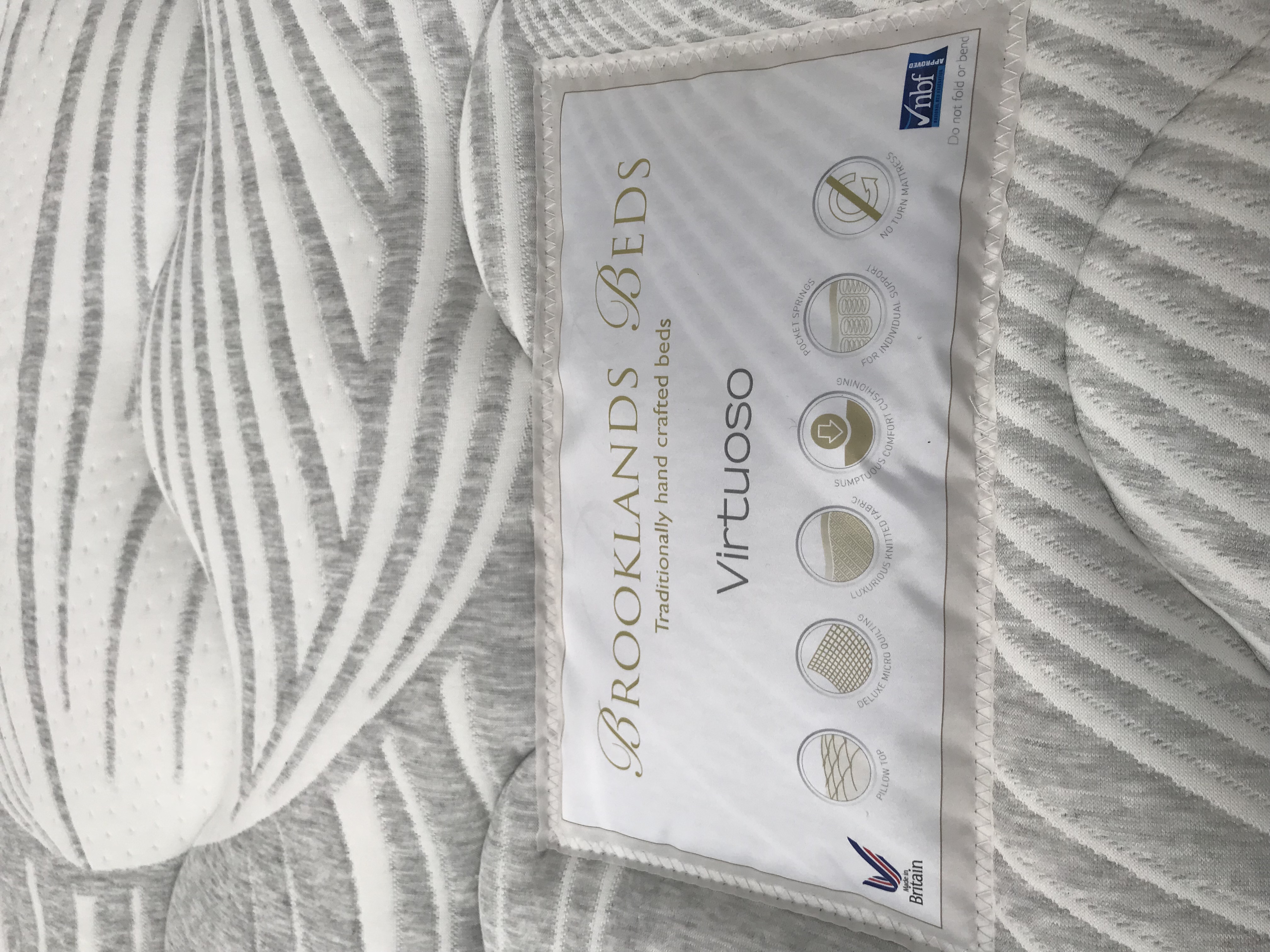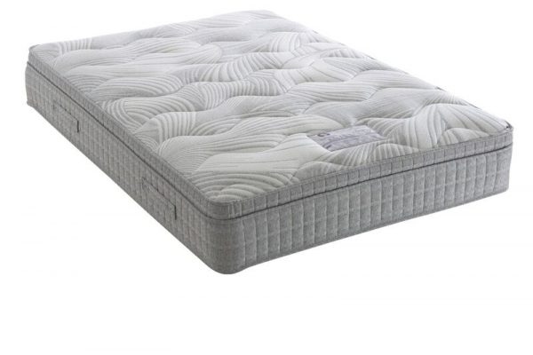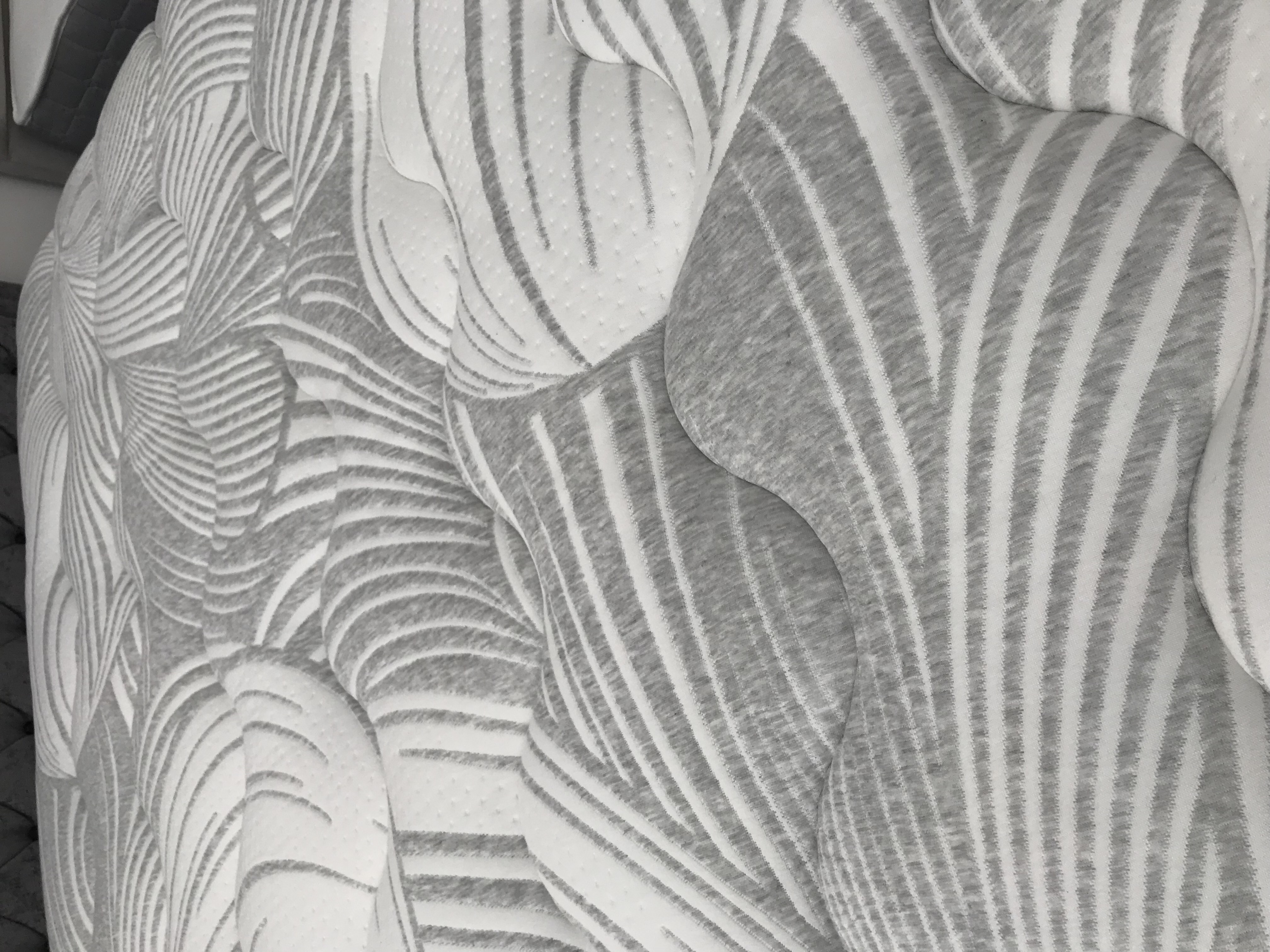 Brand new, 1,000 Pocket Sprung, Micro Quilted High Loft with Deluxe Cushion Box Pillow Top. Upholstered in a deep sculptured kitted fabric. No turn. Soft – Medium rating
